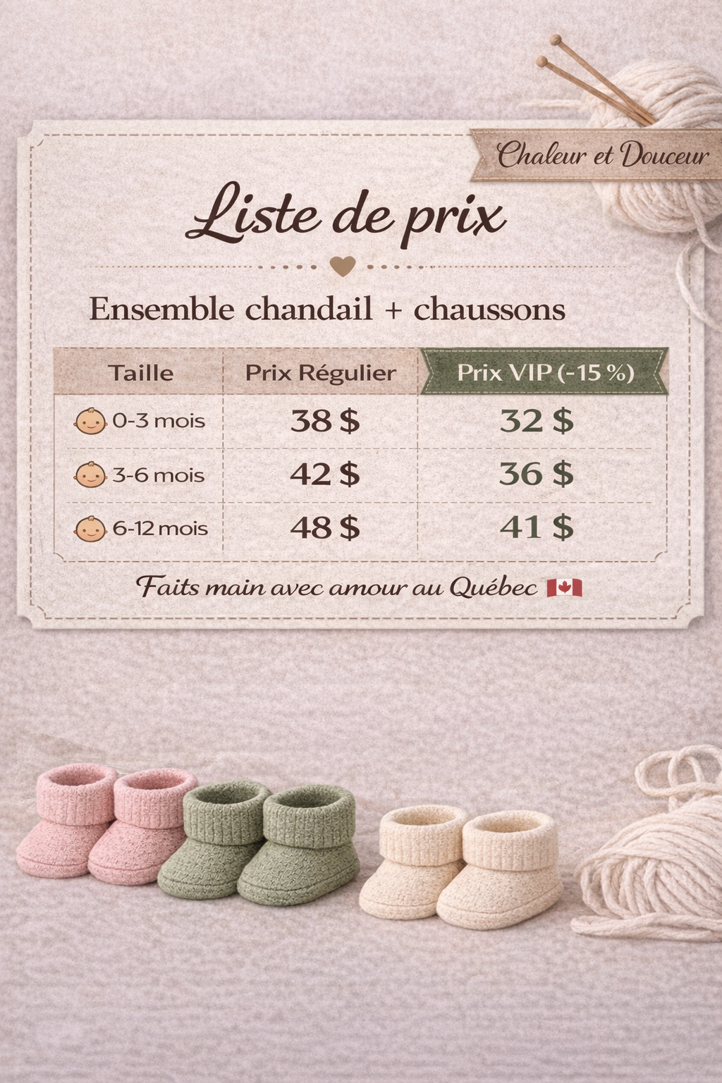 Enveloppez votre bébé de chaleur, de confort et d’amour avec notre ensemble chaussons et chandail soigneusement confectionné à la main 🤍