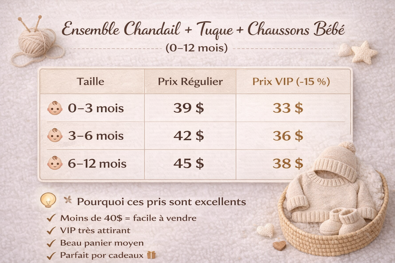 Offrez à bébé un cocon de douceur absolue avec notre ensemble tuque, chandail et chaussons, entièrement confectionné à la main avec amour 🧶🤍